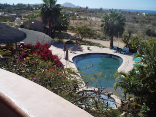 We spent 6 nights dry camping at Santispac bay on the way home. The weather was perfect and we kayaked almost every day. I tried out Mike Koehn"s kayak as it is a "sit in" style; rather than our "sit_upons". Guess we will all stick with our own styles but it's all fun. After our last paddle, we loaded up and headed north. I'm including just some general photos of the trip north. Cattle crossing the road can happen anywhere in Baja and everyone always needs to be watching for them. One of the places we dry camped on the way north was at St. Ynez, or "the Ranch" as it is called. A caravan came in later in the afternoon and circled just like the old time wagon trains. This "ranch" is a huge flat area, with a small restaurant at the east end. There are huge bolders and tall palms in the arroyo adjacent to the parking area. The photo of Roger in the arroyo at The Ranch shows him in a jacket and long pants! Boy, did we all complain about the change in the weather, though of course, we were heading North! The orange building is near the beach at Pabillon RV. We didn't pickup water at this park as we were warned it would be salty that close to the Pacific ocean. The top photo of our coach was at Rancho Sardo Mudo on Mex 3, about 60 miles from the Tecate' border. This was a new park for us. We were the only rigs there, out of season for the area I guess. However, this is a good road (at this point) and in a 'wine route' area. We crossed the border on March 25 and spent one night at Portrero State Park. Mike and Elaine have headed to Az. for a stay before heading north. We are in Pio Pico Thousand Trails park until 4/1 when we will head to Casa Grande. We have a long list to 'to-do's" while there. So it will probably be May before we start heading north. This has been a wonderful adventure. We have talked about going back to Baja again -how and when yet to be decided. We are looking forward to seeing our family and friends to the north, maybe finding more places to kayak on our travels. We look forward to seeing Mike and Elaine at Chelan in September, kayaking on the lake. We hope you are having an adventure of your own! Happy trails....